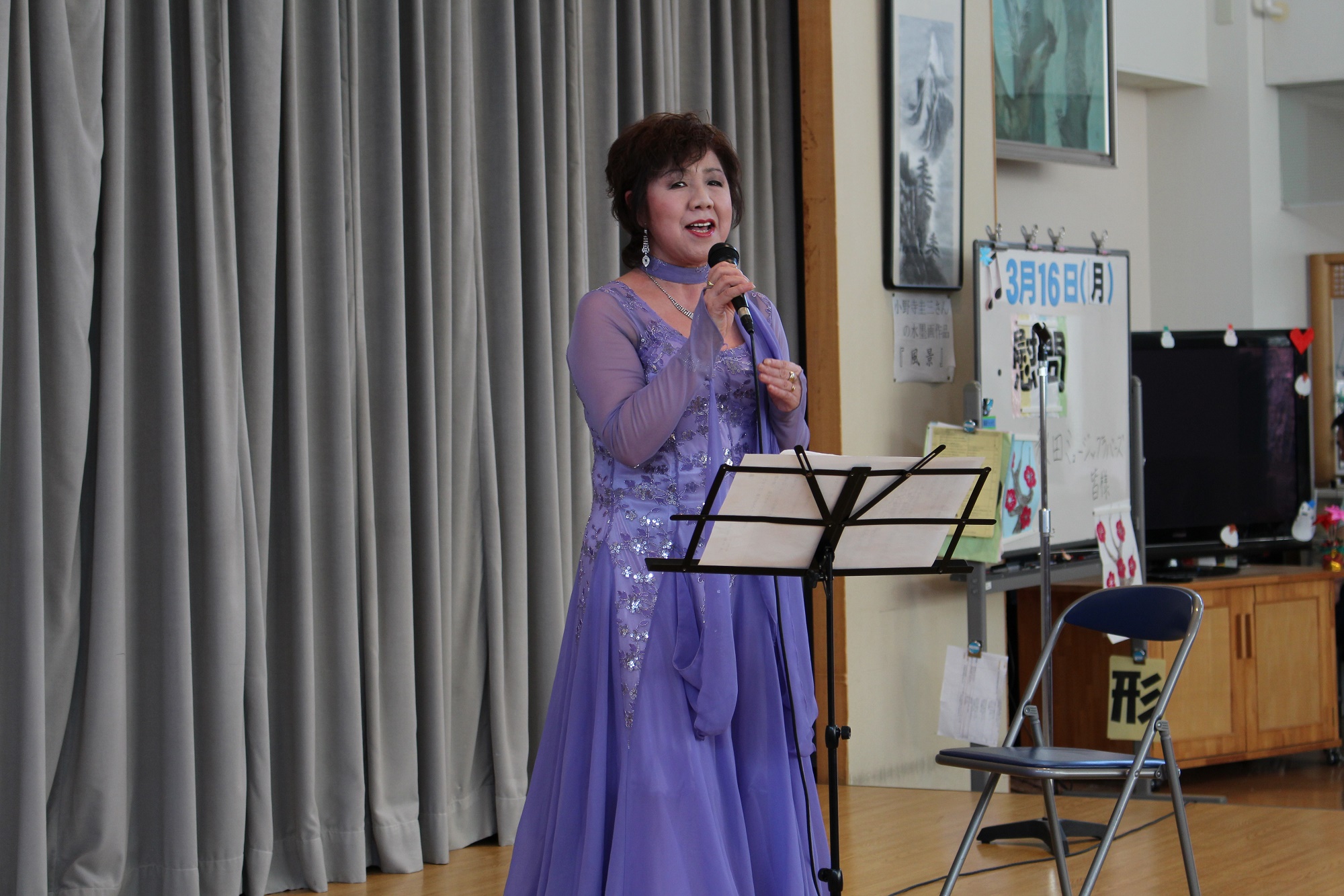 2015年3月26日 / 最終更新日時 : 2015年3月27日 社会福祉法人 新成会 秋田ミュージックラバーズ様 新成園 先日、「秋田ミュージックラバーズ」のみなさんにお越しいただいた様子をお届けします!! 鮮やかな衣装に身を包み、ホールいっぱいに響き渡る声で会場を盛り上げてくれました♪昔なつかしい演歌や歌謡曲に自然と歌を口ずさむ利用者もいました。また、司会者のテンポあるトーク術に会場は笑いに包まれ、楽しいひとときを過ごさせていただきました。 秋田ミュージックラバーズのみなさん、ありがとうございました。 またのお越しをお待ちしております!!